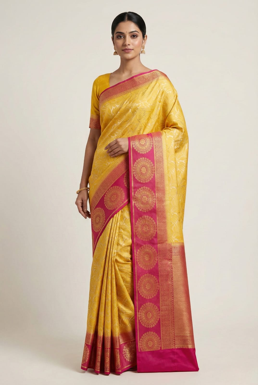 Fabric: made from 100% Banarasi soft cotton and full of gold jari lines, breathability and...