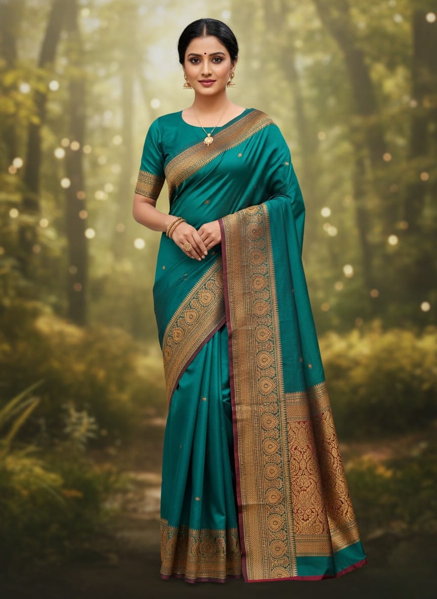 Celebrate tradition with a royal touch in our Kanchipuram Silk Saree with Meena Emboss Pallu 🌸Designed...